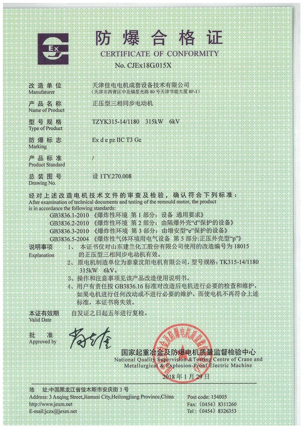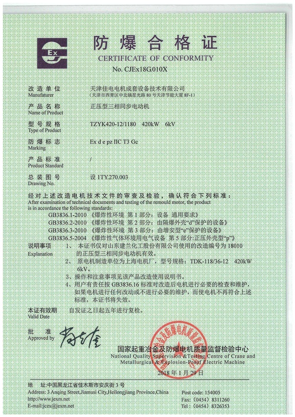 改造內(nèi)容:將現(xiàn)場7臺(tái)大型同步電機(jī)以就地取風(fēng)的形式,進(jìn)行正壓通風(fēng)改造,保證原有設(shè)備性能,并取得驗(yàn)收機(jī)構(gòu)頒發(fā)的防爆合格證。