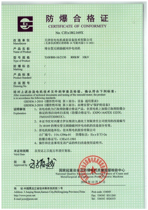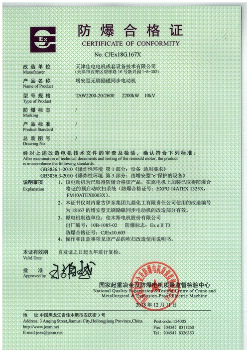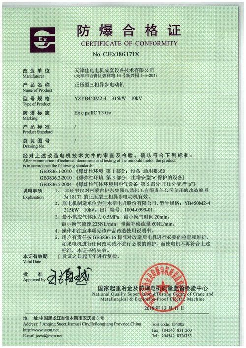 項目名稱:內(nèi)蒙古伊東集團九鼎化工有限責(zé)任公司電機防爆改造項目