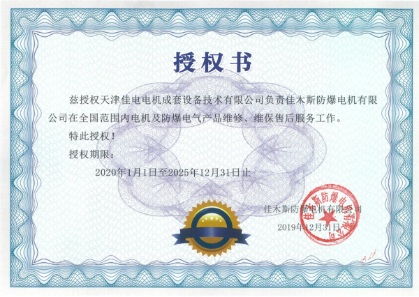 3、佳木斯防爆電機(jī)公司授權(quán)書