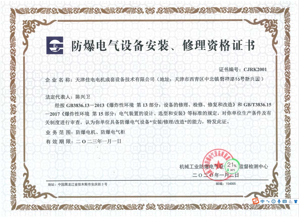 2、防爆電氣設(shè)備檢修能力認(rèn)可證書